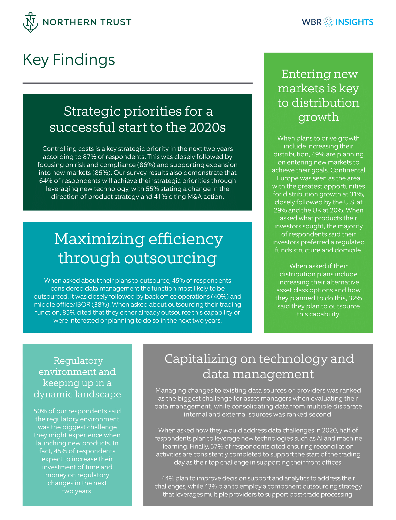 Driving growth beyond 2020 requires more than finding new streams of revenue or reducing costs. In a contracting market, the most successful asset managers look at their operating models from the perspective of their whole office, seeking holistic changes that enable growth.