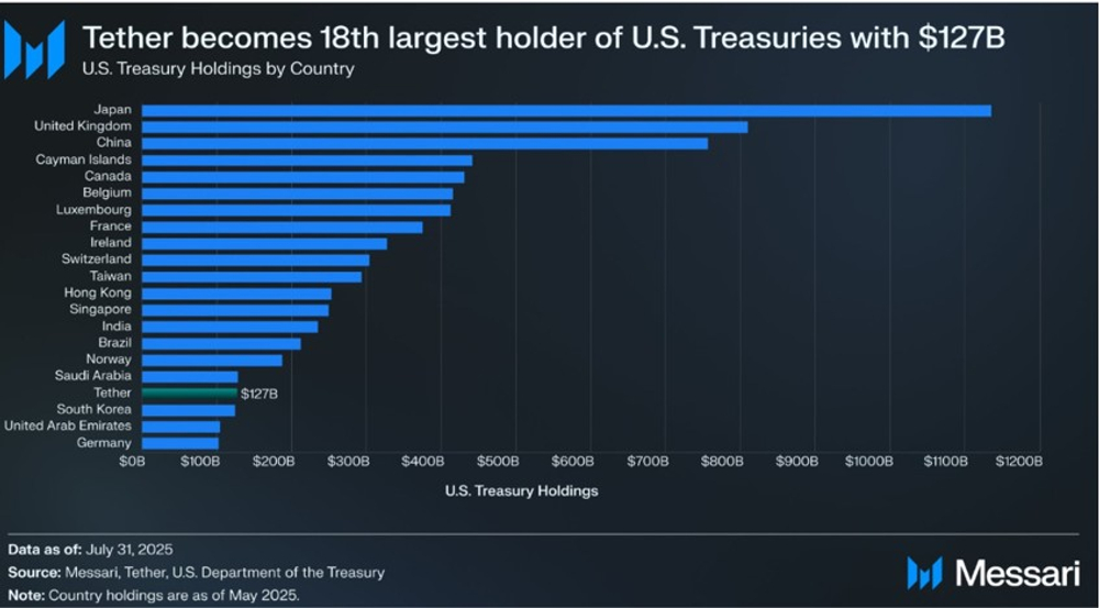 The trajectory of Tether, the world’s largest issuer of USDT founded in Hong Kong, exemplifies this scale. Facilitating remittances to markets like the Philippines, it has since become one of the largest holders of US Treasury securities, with $127 billion as of mid‑2025, demonstrating stablecoins’ growing integration into mainstream financial systems.
