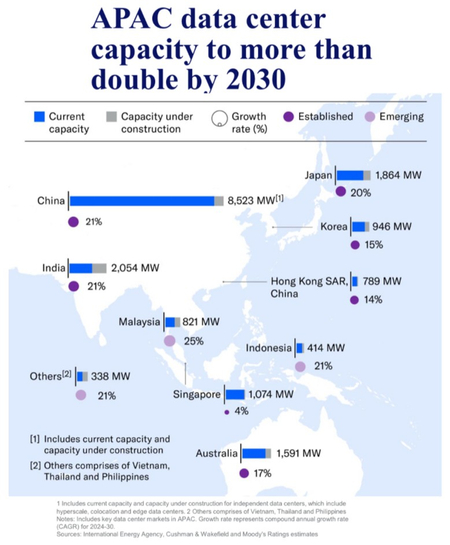 Malaysia’s data centre market is classified as “Emerging,” with a current capacity of 507 MW and another 314 MW under construction, targeting a total of 821 MW -- a 25% growth rate, among Asia’s highest.