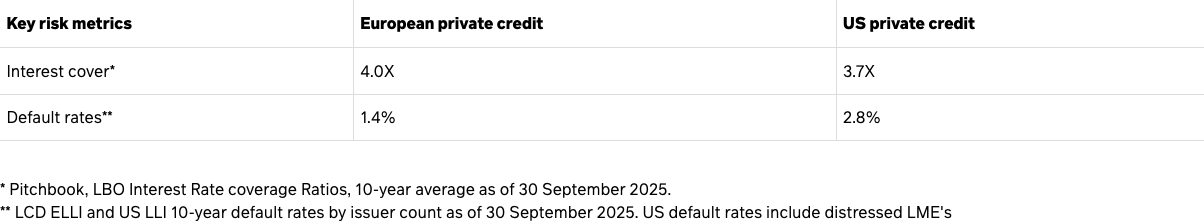 Overall, not only can European private credit tempt investors with superior risk-adjusted returns, but it also currently appears to be a more reassuring and exciting prospect than the US. Stronger European covenants and lower default rates offer superior investor protections and serve as a strong buffer should either a global economic shock or wider private credit concerns emerge.